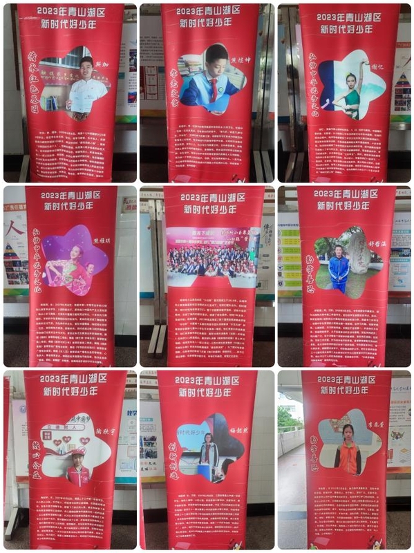 政教处将九位同学的典型事迹通过展示牌的形式进行一一呈现。附中的同学们在课间时积极参观并热烈讨论,在校园里营造了一种人人争做“好少年”的浓厚氛围。