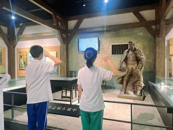 在江西革命烈士纪念馆,几十米长的烈士浮雕,描绘的是一群革命先烈当初斗争的场面。整组浮雕像是一团燃烧的火焰,浮雕正中间刻有“250000”几个铜色数字,代表着江西为了革命斗争牺牲的二十五万名烈士,占中国牺牲烈士的1/6。两侧浮雕重现南昌八一起义、还原方志敏在狱中的场景、存放有三十七本英烈名册的长廊,这些一一震撼着同学们,同学们感悟岁月,感悟英雄前辈的光辉事迹,感受建军96周年以来的来之不易。